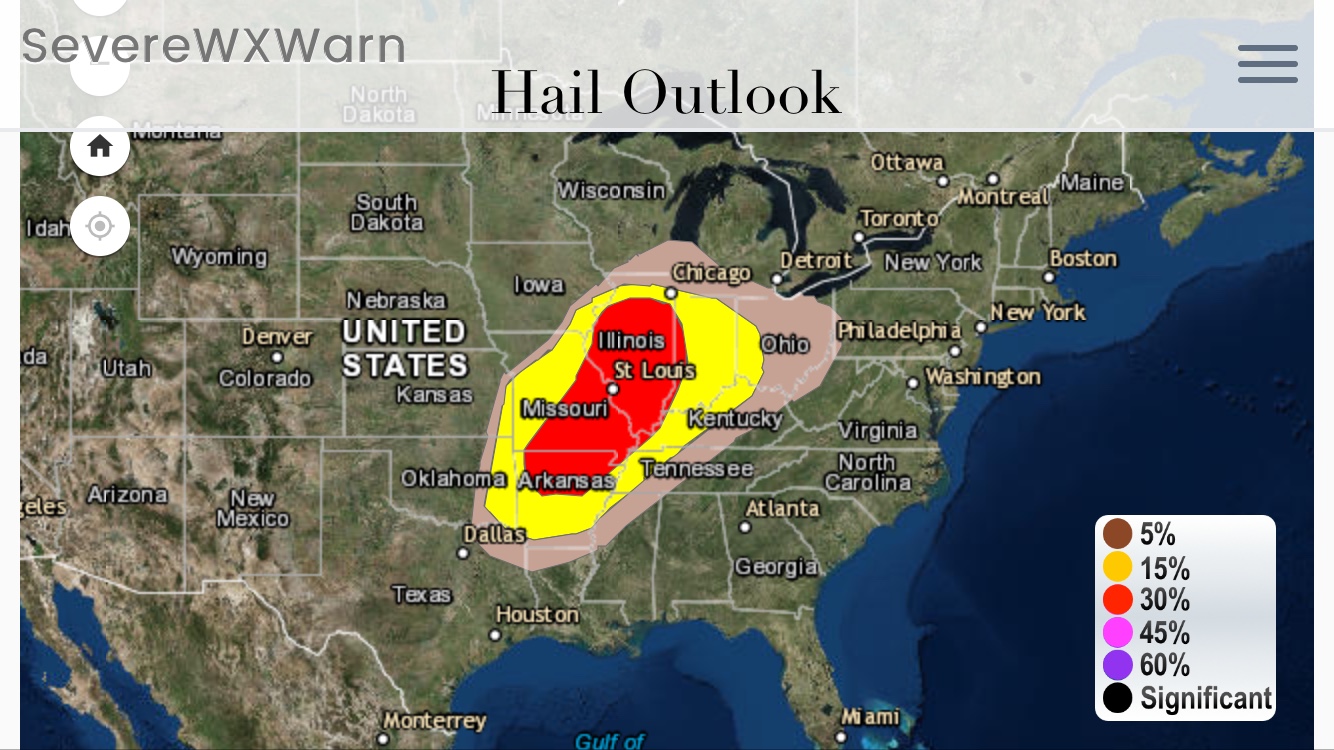 An enhanced severe weather outlook is in effect today for areas from northern Arkansas northeastward across parts of Missouri, Illinois and Indiana. A slight risk of severe weather extends from Texas into the Ohio Valley. The main threat for severe weather will be this afternoon into the late evening hours with the main threats being straight line winds and hail with the possibility of some strong tornadoes. Below is the information directly from the Storm Prediction Center on the current situation. Be sure to check out the features offered on our site to track the severe weather and stay ahead of the storms.