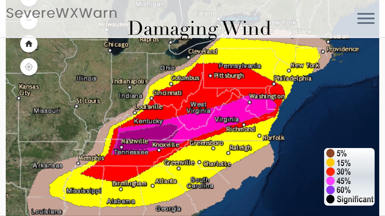 of severe gusts and swaths of wind damage will align from near the
